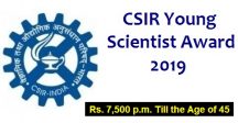 CSIR Young Scientist Awards 2019: The Council of Scientific & Industrial Research (CSIR) invites nominations for CSIR Young Scientist Awards for the year 2019. The awards are to be given for research contributions made primarily in India. The nominee should be a regular Scientist (as per CSRAP Rules) of CSIR system and should have joined the CSIR laboratory on or prior to 26th September 2018. The age of the nominee should not be more than 35 years as on 26th September 2018.
